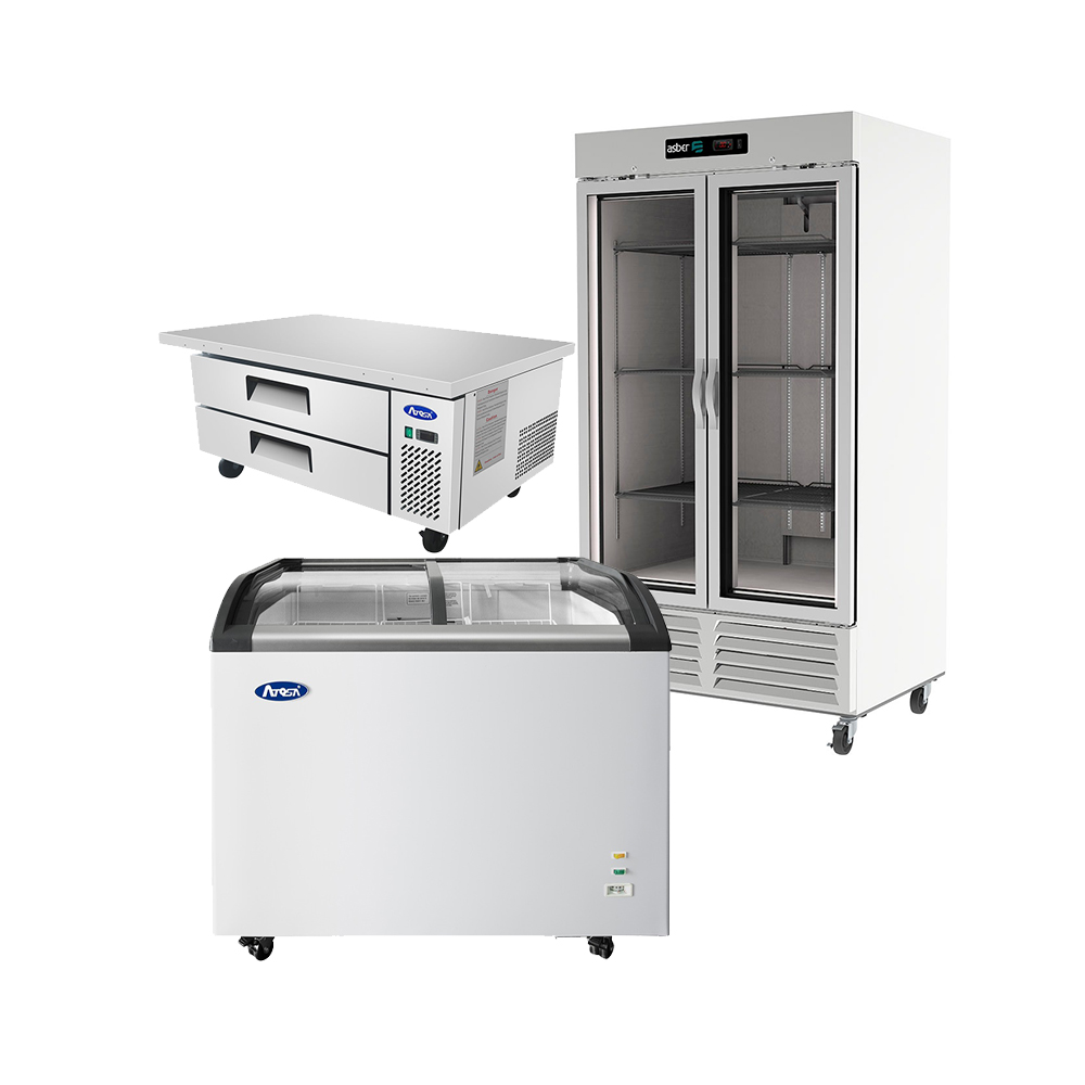 Este es indispensable para mantener los alimentos en buen estado, tener hielo disponible en todo momento y mantener los postres frescos. Si puedes conseguir de vitrina mucho mejor, porque te sirve como exhibidor para tus pasteles, postres o pays. Si tu presupuesto te lo permite, y prefieres eficientar tu operación, puedes adquirir una máquina fabricadora de hielo lo que hará que la disposición de hielo para tus bebidas sea mucho más rápido.