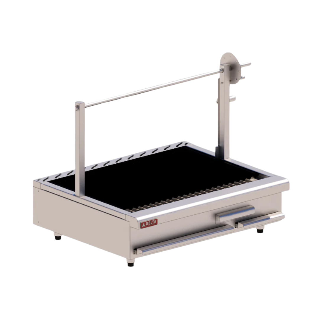 El Asador Argentino de Acero Inoxidable ASR-ARG TOP DELTA está diseñado para ofrecer una experiencia de asado profesional con excelente control del calor y gran durabilidad. Su parrilla superior tipo V de acero inoxidable permite un mejor marcado de los alimentos y un eficiente escurrimiento de grasas y fluidos. Además, cuenta con sistema de elevación mediante manivela y cadena de acero inoxidable, lo que facilita ajustar la altura de la parrilla para lograr la cocción ideal en todo momento.