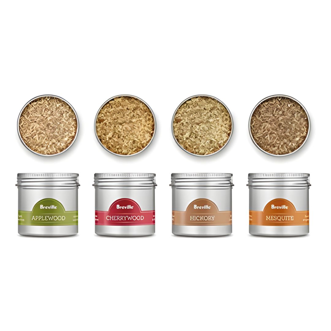 El BSM600AWC0NUC1 es un kit profesional diseñado para infundir sabores ahumados naturales a alimentos y bebidas mediante la pistola ahumadora Breville PolyScience CSM700PSSONUC1. Este set incluye cuatro frascos de 4 oz cada uno, con astillas de madera secas y sin aditivos, ideales para crear humo frío que realza el sabor de carnes, quesos, cócteles y postres. Cada tipo de madera ofrece un perfil de sabor único: