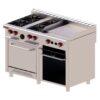 La estufa H-4-GA MIX es una unidad más avanzada, que combina 4 quemadores de 30,000 BTU/hr con una plancha y un gratinador, lo que la hace ideal para cocinas que necesitan una mayor variedad de herramientas para cocinar. La plancha tiene una potencia de 35,500 BTU/hr, mientras que el gratinador permite una cocción aún más eficiente. Es una estufa completa y robusta, diseñada para aquellos que necesitan un equipo de alto rendimiento en un solo dispositivo.