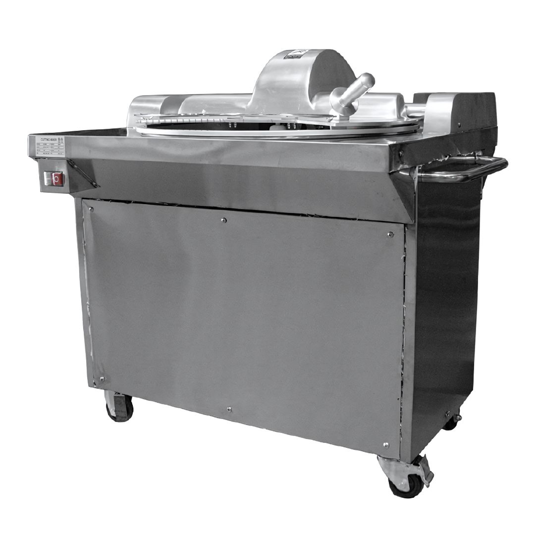 Equipo profesional de piso diseñado para cortar, mezclar y procesar carne, vegetales y frutas en grandes volúmenes. Su estructura robusta en acero inoxidable y aluminio anodizado, junto con su motor de alta potencia, lo hacen ideal para centros de producción, carnicerías y cocinas industriales. Incluye gabinete cerrado, ruedas para fácil desplazamiento y sistema de seguridad térmica.