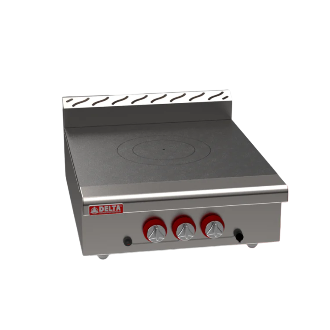 La Plancha Francesa 3-PF TOP DELTA es un equipo diseñado para cocinas comerciales que requieren mayor superficie de trabajo y alto rendimiento. Su placa de acero cold rolled de 5/8″ con plato desmontable central permite cocinar directamente sobre la plancha o utilizar recipientes en el quemador central tipo estufa. Su estructura en acero inoxidable ofrece durabilidad, resistencia y fácil limpieza para uso intensivo.